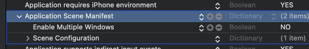 1. Info.plist에서 Application Scene Manifest 제거