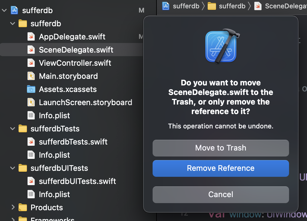 2. SceneDelegate.swift 제거, Move to Trash <<<