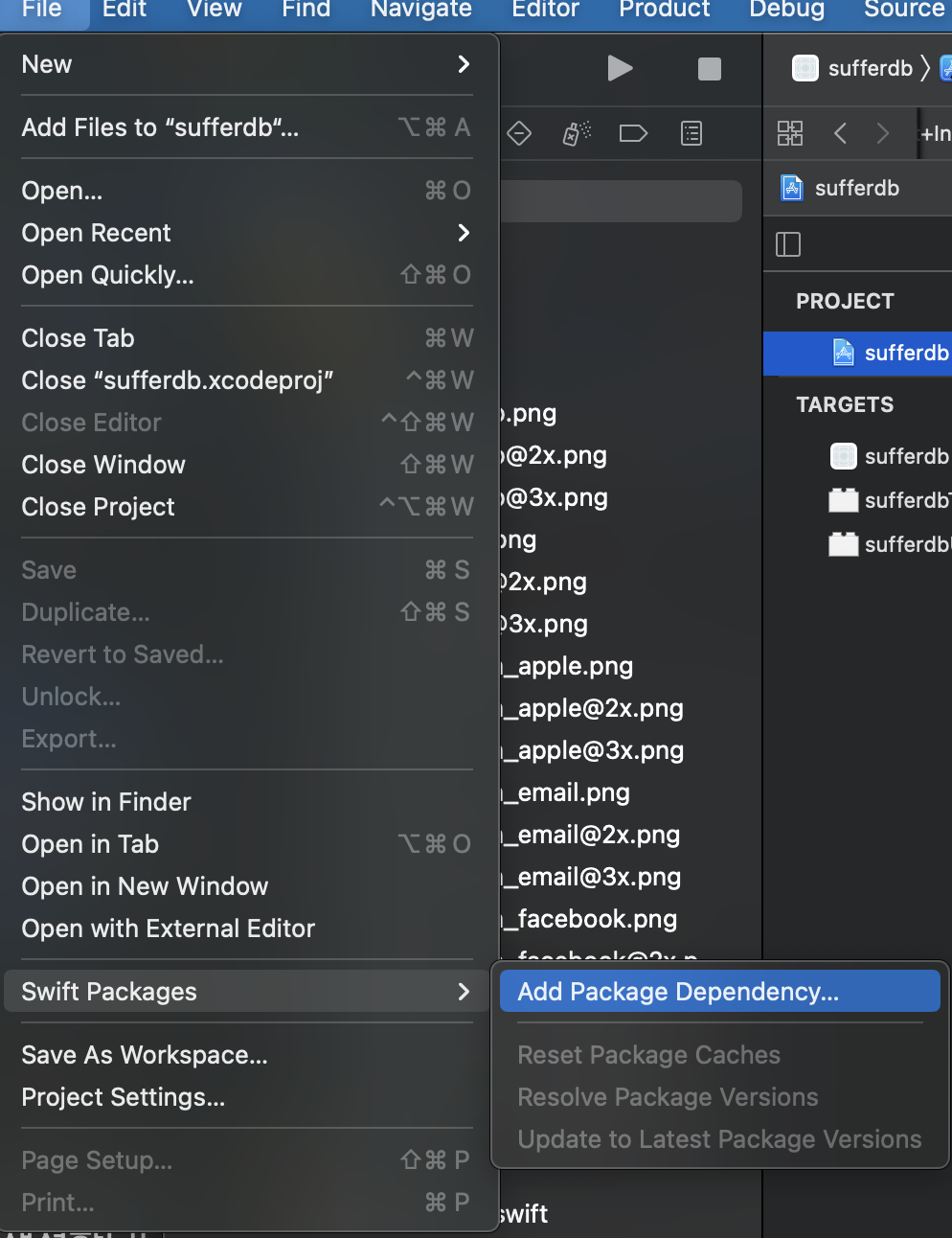 File > Swift Packages > Add Package Dependecy를 클릭